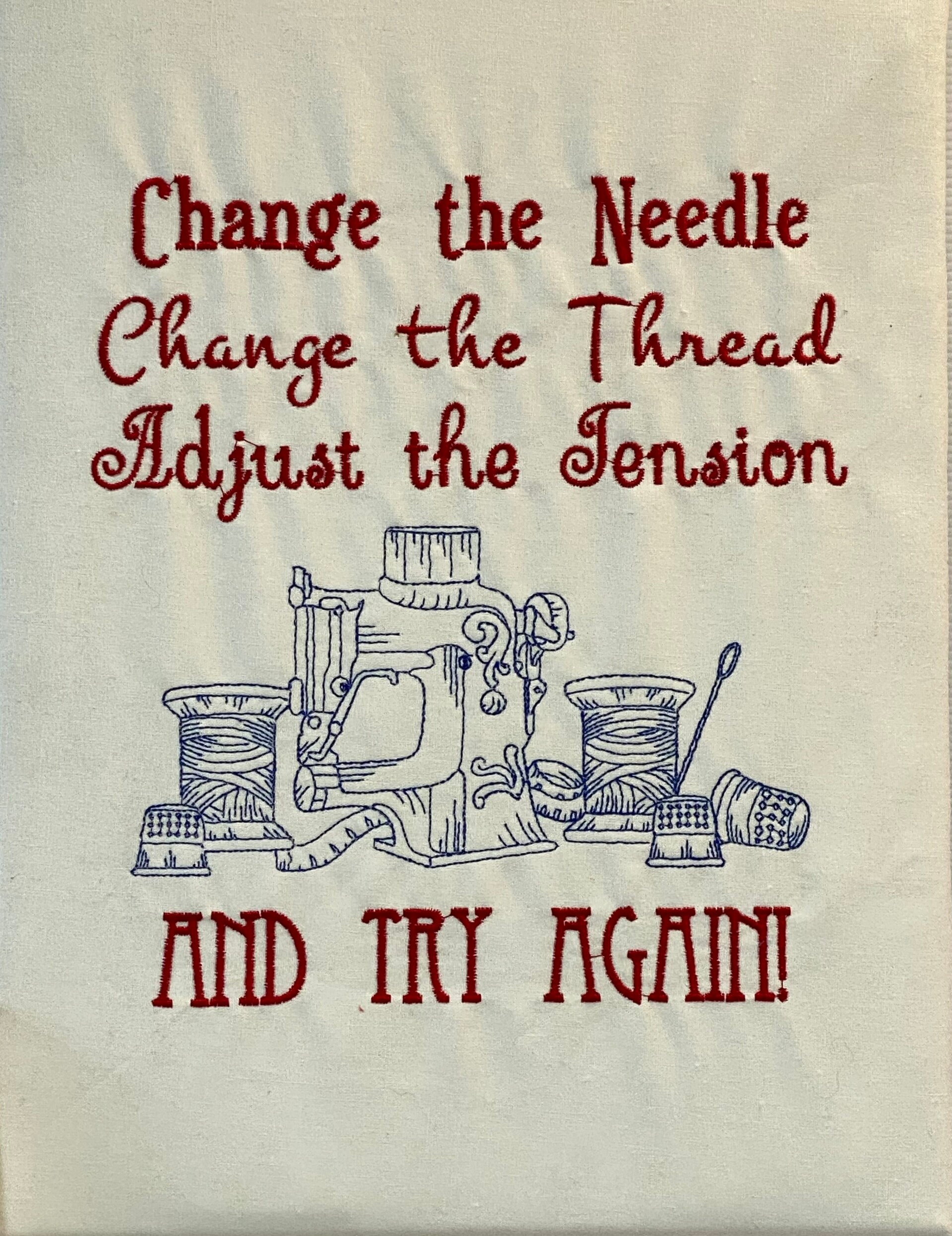 Make items: in the hoop; combining design and text; embroidering on different fabrics;
